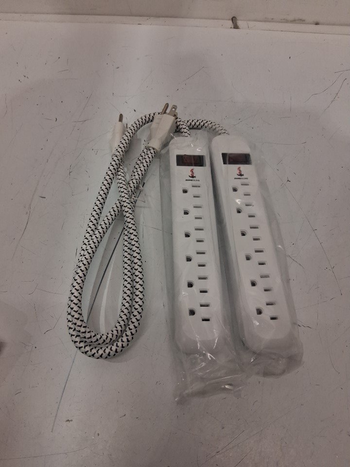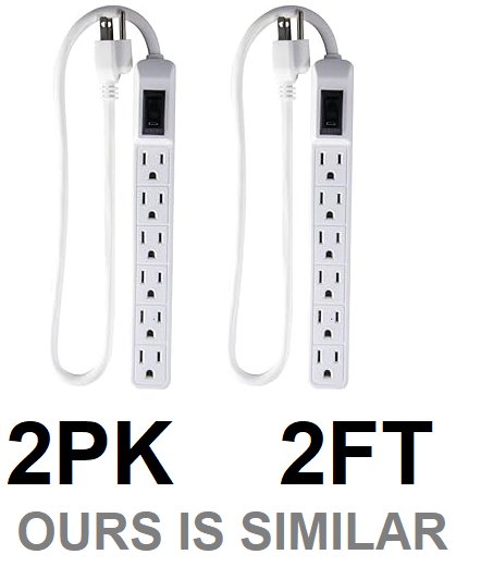 2PK POWER STRIP surge protectors - 2ft braided cord - 1875w - 15A - White