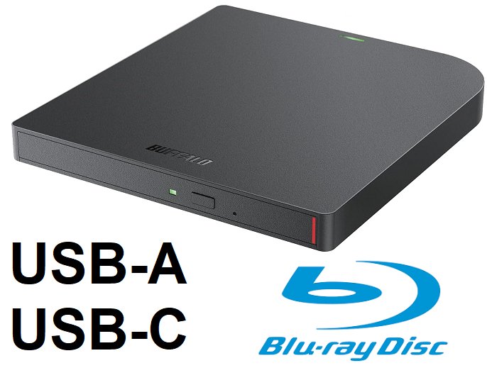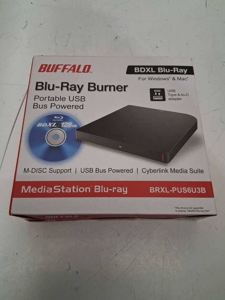 BUFFALO mediastation 6x portable USB-A and C Blu-Ray read/write/burner - For Windows/mac (Model: BRXL-PUS6U3B-US)