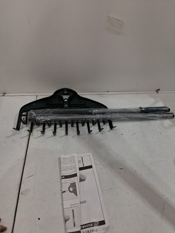ORIENTOOLS foldable Garden Leaf Rake with double row tine - 17" x 62" - green (model: ‎CPX-008-SIA)