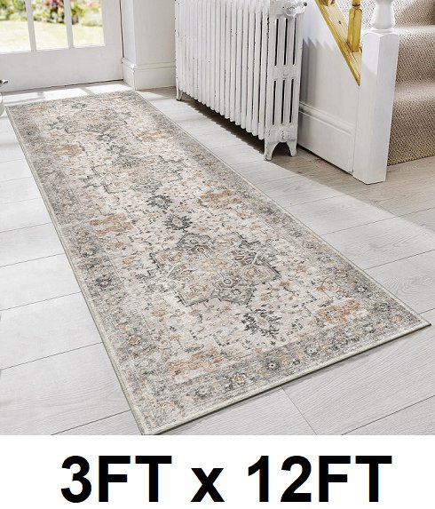 GENIMO SOFT WASHABLE RUNNER RUG - 3FT X 12FT - VINTAGE BEIGE