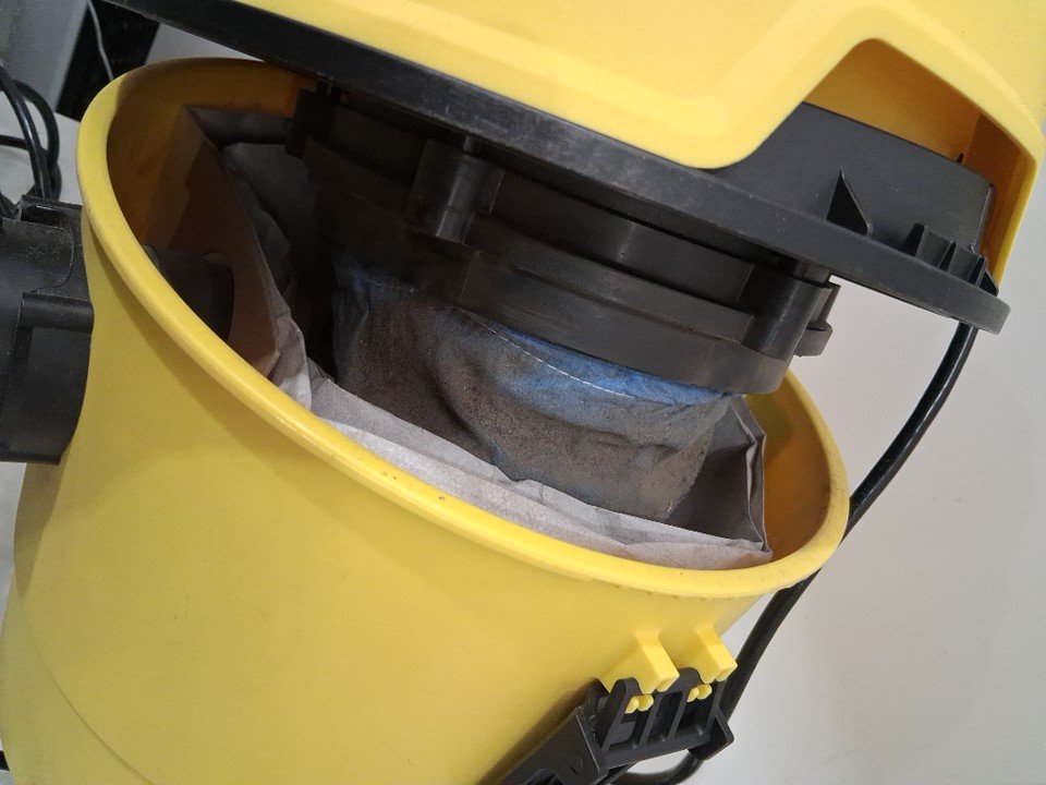 there is dirt in the vacuum and the filter. it has an odor as well as there is a black scuff mark near the logo on the front. tested for power.