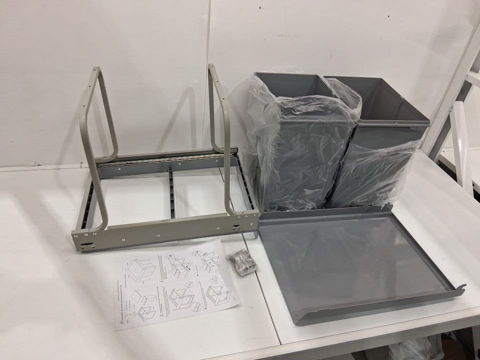 GOOFCXO Dual Pull Out/Slide Out Garbage Bin/can with Lid and Soft-Close Rail - 20L+20L-GREY - (MODEL:CAW3-12-0203)