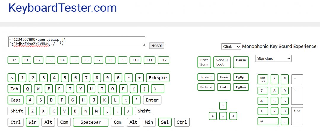 Tested for power/function. Please note that not all the keys in the keyboard test image are lit up, but all keys work (see photos)
