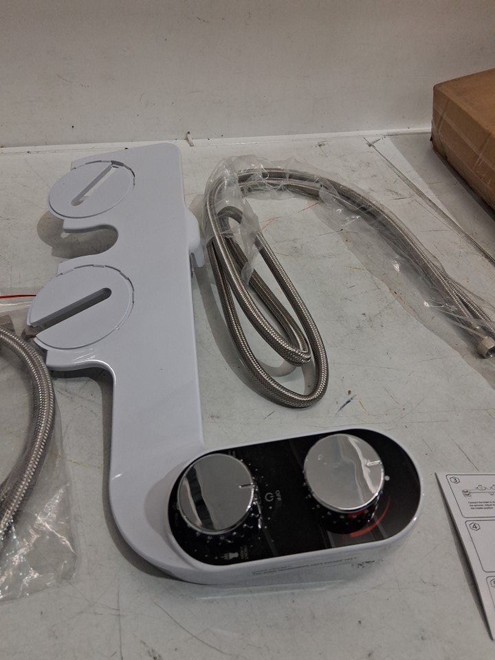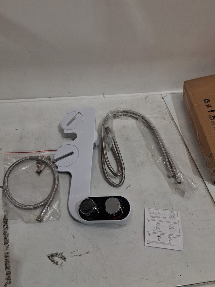 COSYLAND Non-Electric Bidet Toilet Attachment, Self-Cleaning Dual Nozzle and Easy Water Pressure Adjustment for Sanitary and Feminine Wash, Includes 2 T Adapter - WHITE/BLACK