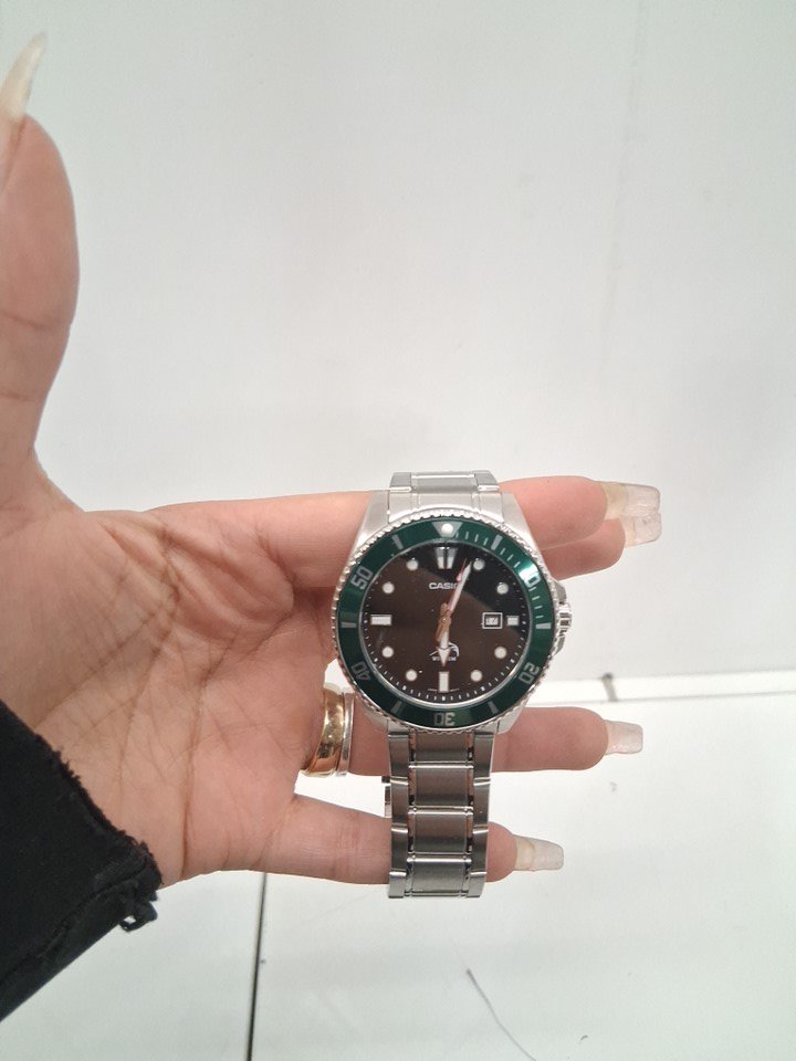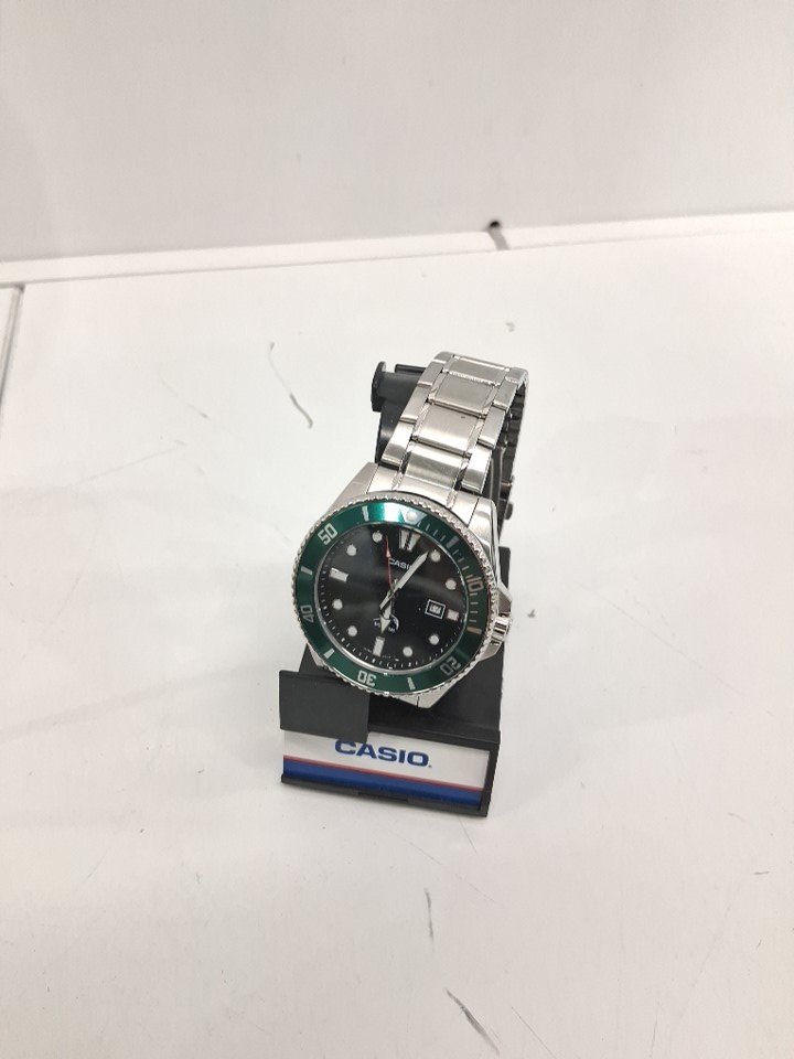 unisex adult casio analog watch - 44mm - stainless steel/green (model: mdv-106)
