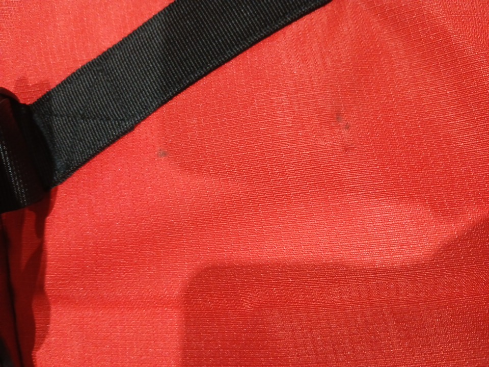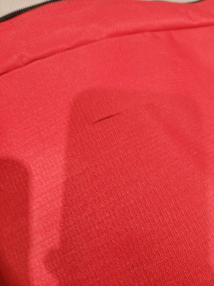 there is a small tear present, as well as some dirt transfer due to use