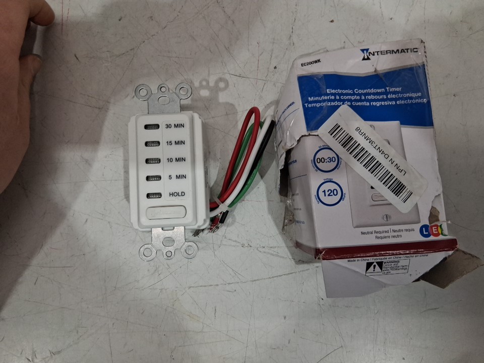 INTERMATIC INDOOR IN-WALL ELECTRONIC COUNTDOWN TIMER WITH PRESET TIMES - 15 AMP, 30-MINUTE - WHITE (MODEL:EC200WK)