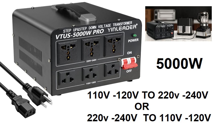 Yinleader Voltage Transformer with Circuit Protection US Power Cord- 5000W/Step Up 110v -120v to 220v -240v OR Step Down Transformer 220v -240v to 110v -120V -