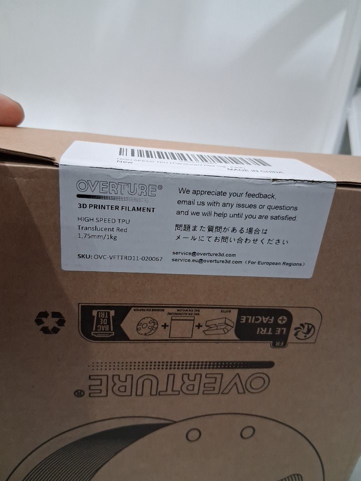 OVERTURE 3D PRINTER high speed tpu FILAMENT SPOOL - 1KG - 1.75mm - translucent RED