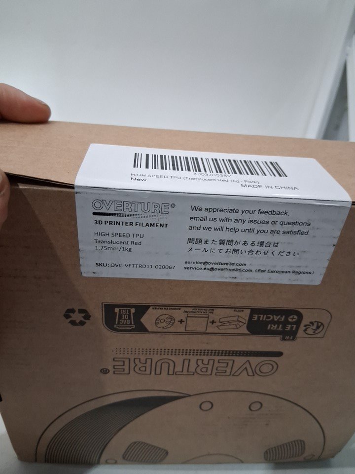 OVERTURE 3D PRINTER high speed tpu FILAMENT SPOOL - 1KG - 1.75mm - translucent RED