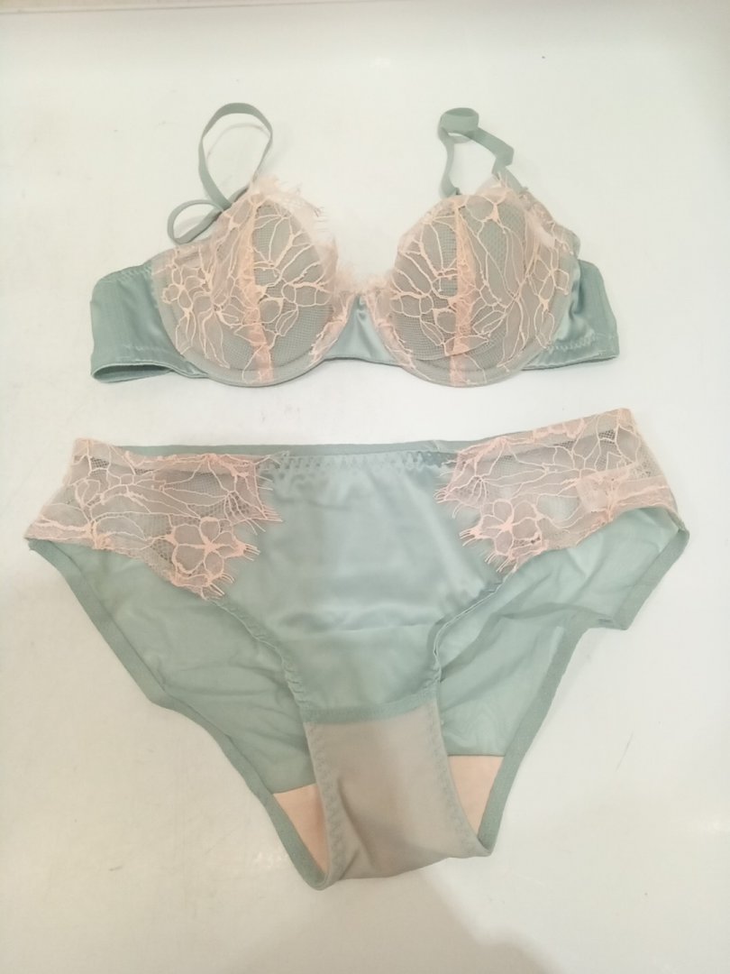 2PC Rosemo Lace Push-Up Lingerie Set - Small - Light Blue/Pink
