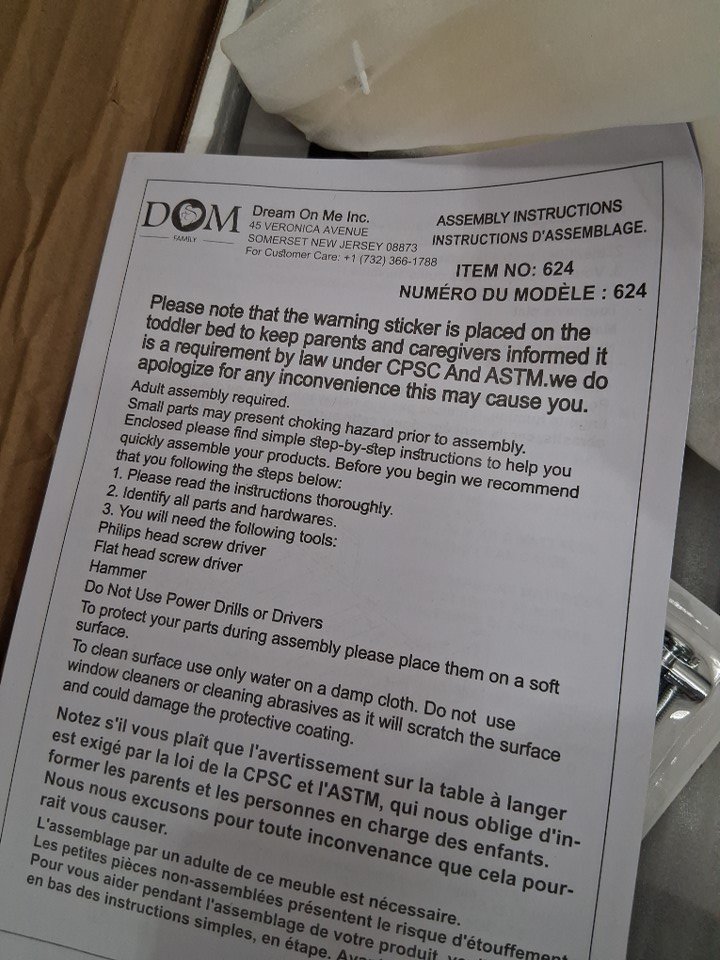 Dream On Me classic design toddler bed frame - 53" x 28" x 39" 50lbs max - Cool Grey - (model: 624)
