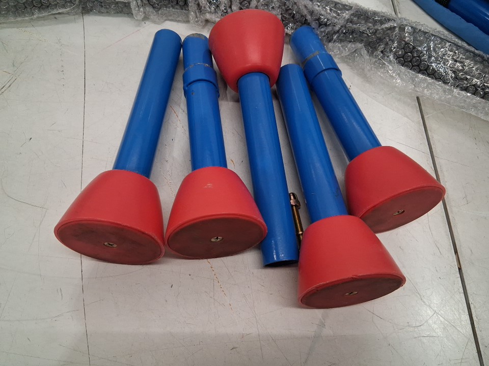 the blue and red posts have some dirt and scuff marks from use, and only one of the screws appears to be there, see photos.