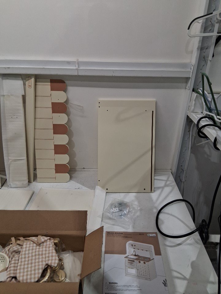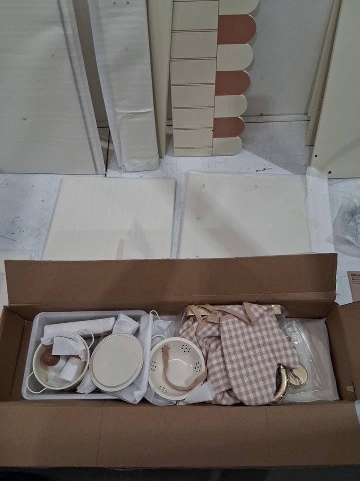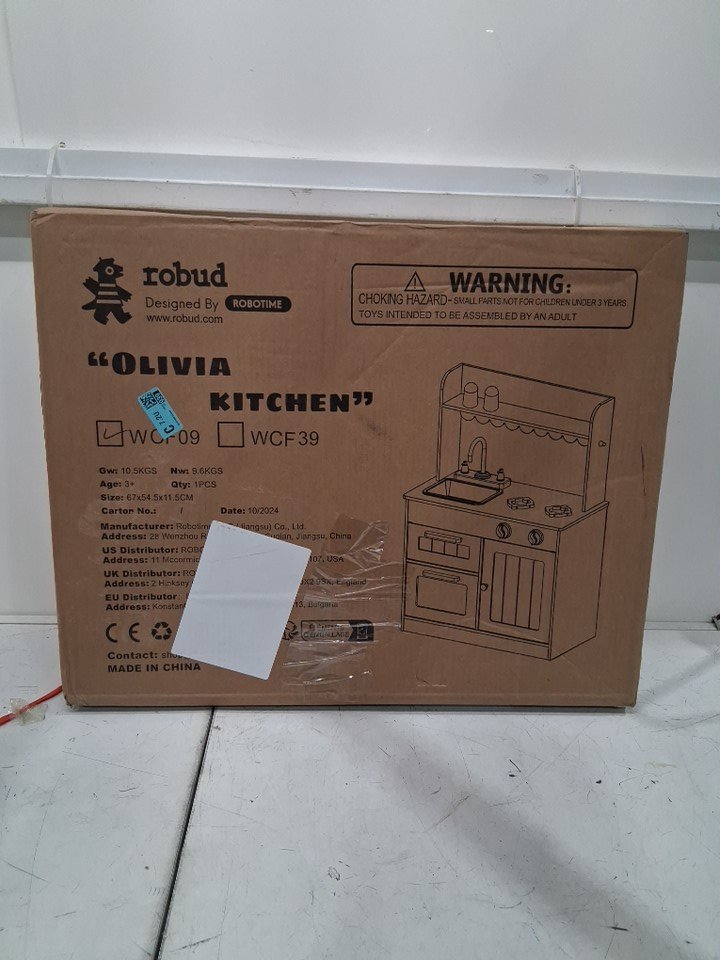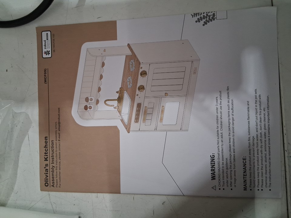 robud realistic wooden play kitchen - 11.8" x 23" x 31.8" - vintage style - cream/beige (model: wcf09)
