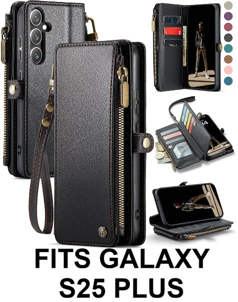 DEFENCASE Case Wallet with RFID Blocking Card Holder - FITS GALAXY S25 PLUS - BLACK