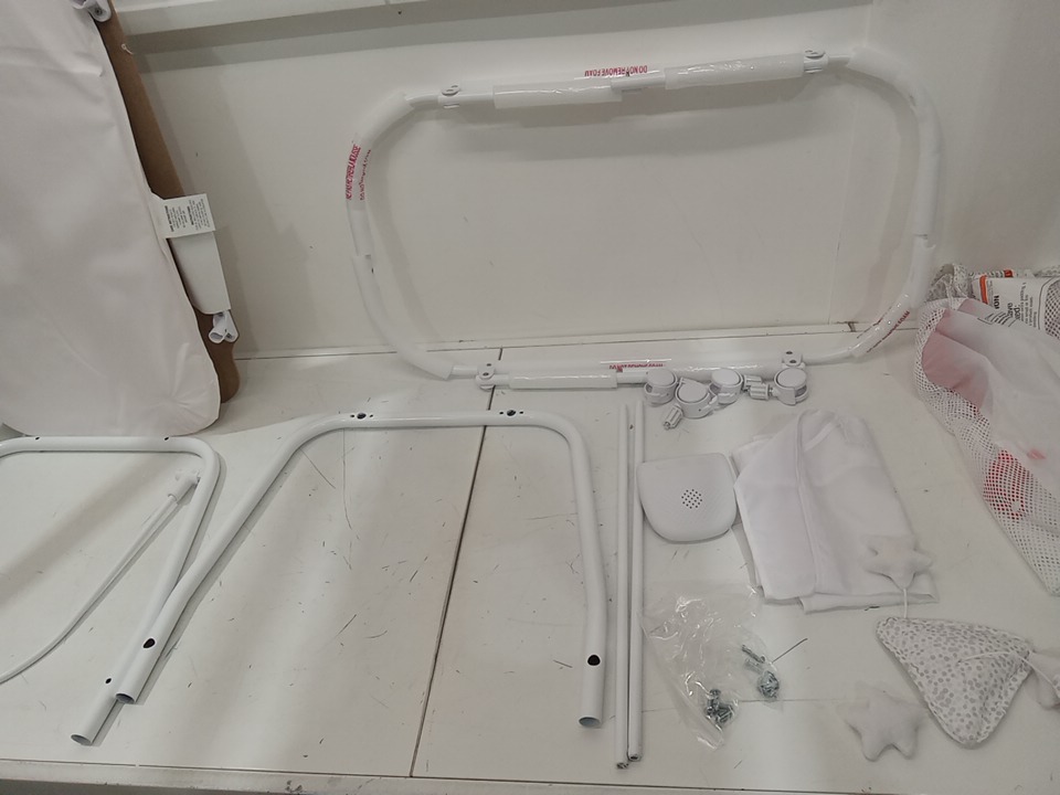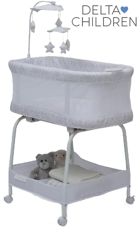 Delta Children Sweet Breeze 2-Tier Air Flow Bassinet with Breathable Mesh - 32.5” L x 21” W x 47” H - White/Grey Alloy (Model: ‎251316-2327)