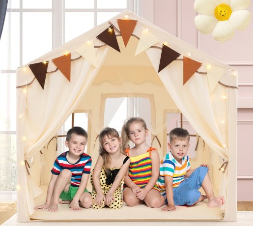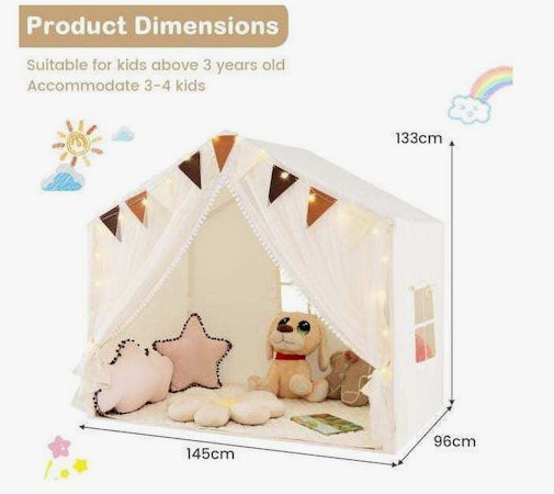Costway Large Toddler Playhouse Tent with Door Curtains Windows - BEIGE/CREAM (model: TP10263BE)