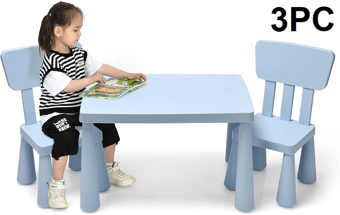 3PC Costway Plastic Kids Table and Chairs Set - 110lbs cap - Blue