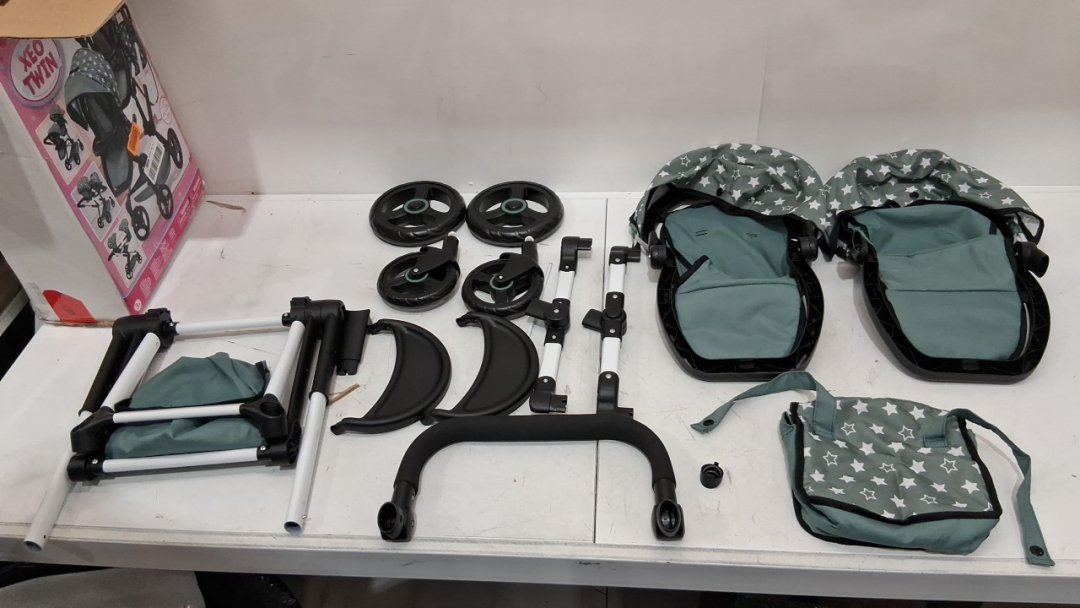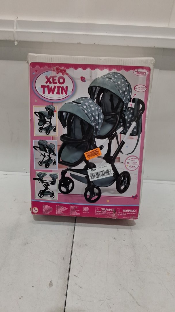 Bayer Design twin Dolls Pram Xeo ADJUSTABLE HANDLE Baby Stroller for Dolls with side Bag - teal blue/white (MODEL: 26758AA))