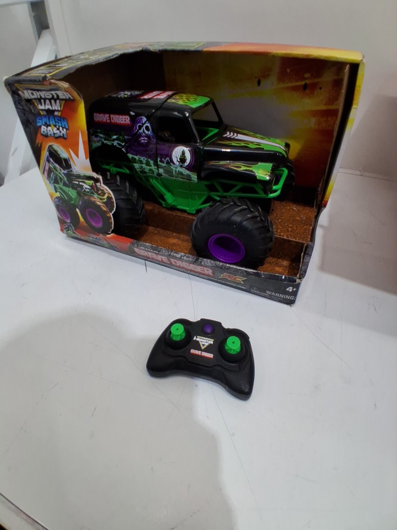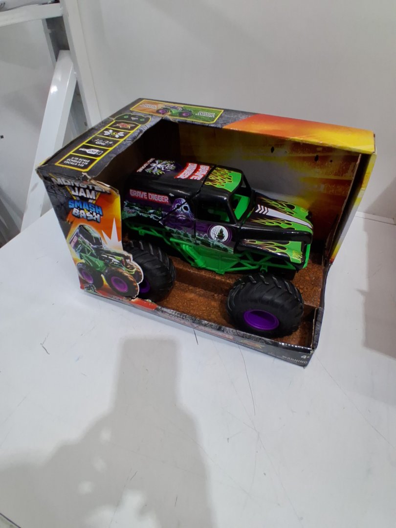this has been previously used. there is very light wear on the wheels, and some small scuffs on the bumper. tested for power and functionality.
