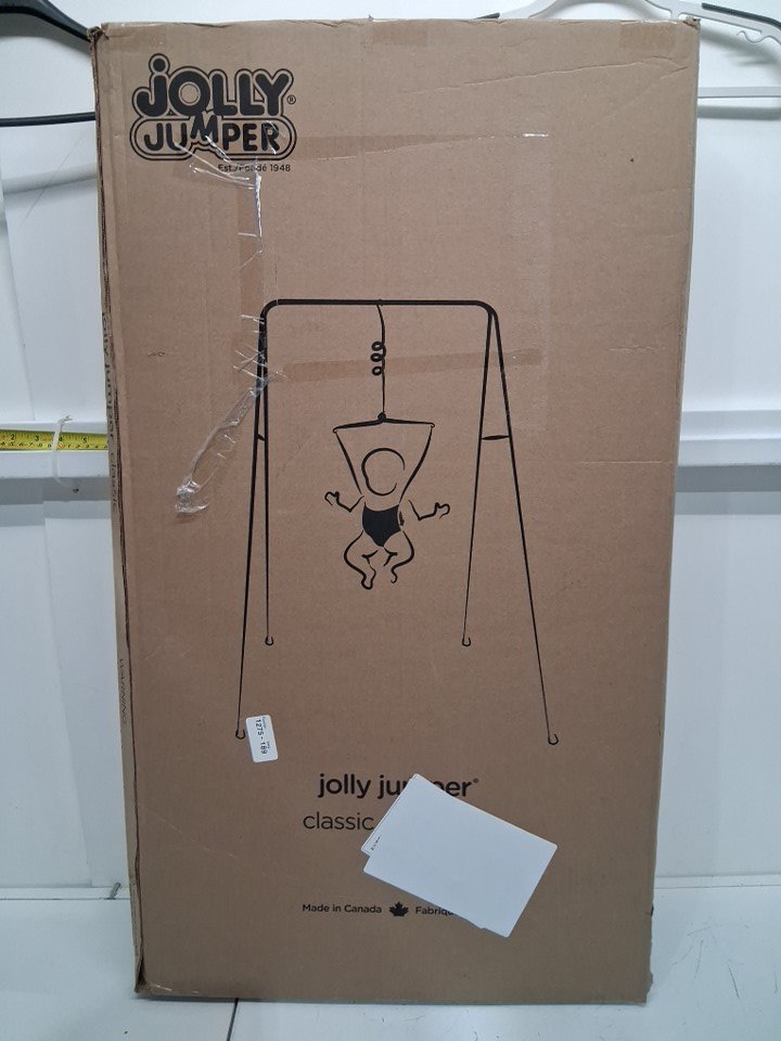 Jolly Jumper Classic Portable Baby Exerciser With Grey Fabric Saddle - 28 LBS Max - White/Grey (Model: 109)