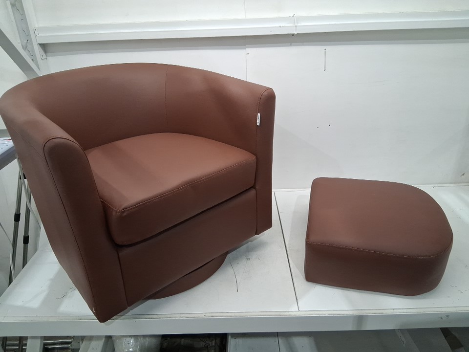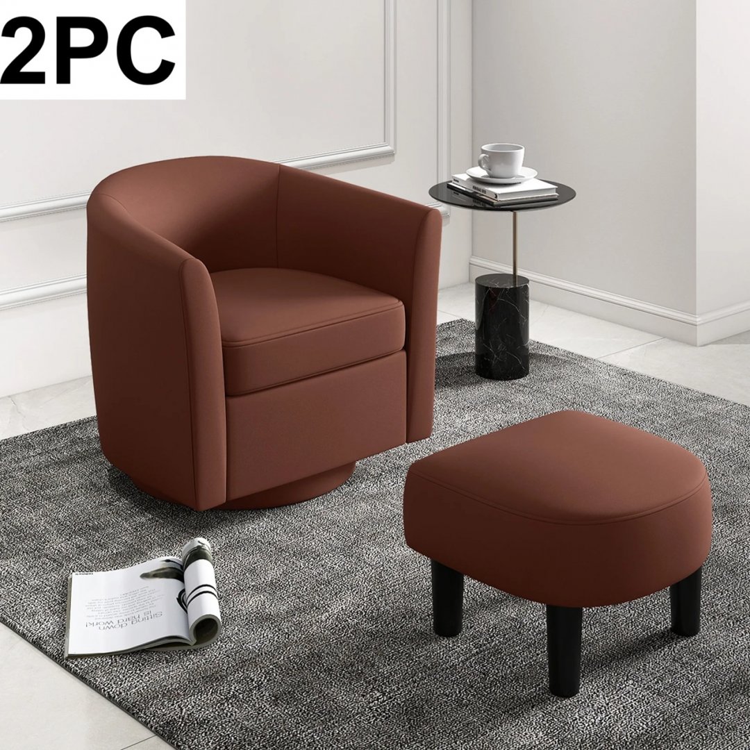 2pc costway modern swivel club accent chair and ottoman foot rest - 25" x 24" x 27" - brown - (model: hv10670bn)