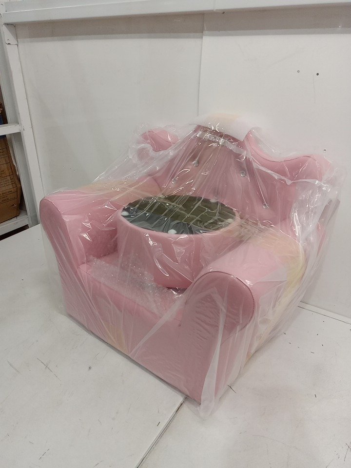 COSTWAY Faux Leather Upholstery Princess Kids Arm Chair Kids Sofa with Ottoman - 19" X 21.5" X 23" - pink (model:HW54194PI)
