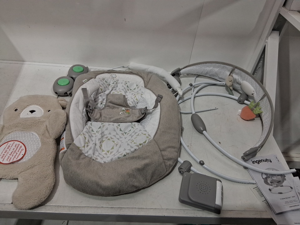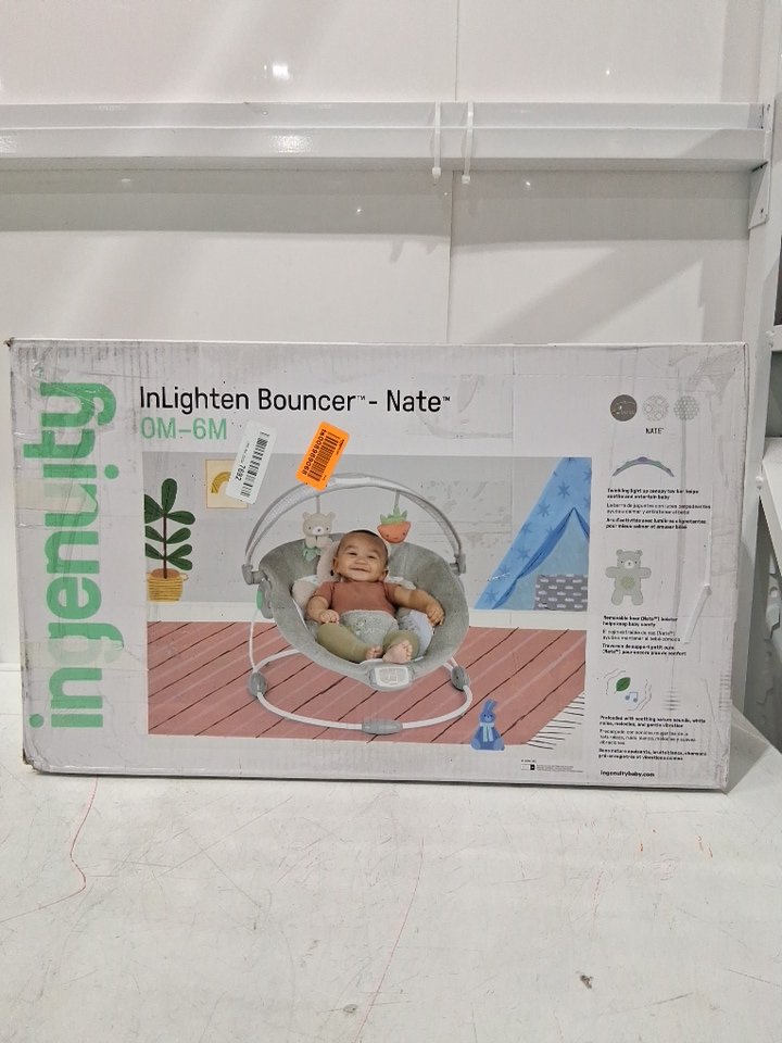 Ingenuity InLighten Baby Bouncer Seat with Light Up Toy Bar and teddy Bear Tummy Time Pillow Mat - 0m-6m - Nate