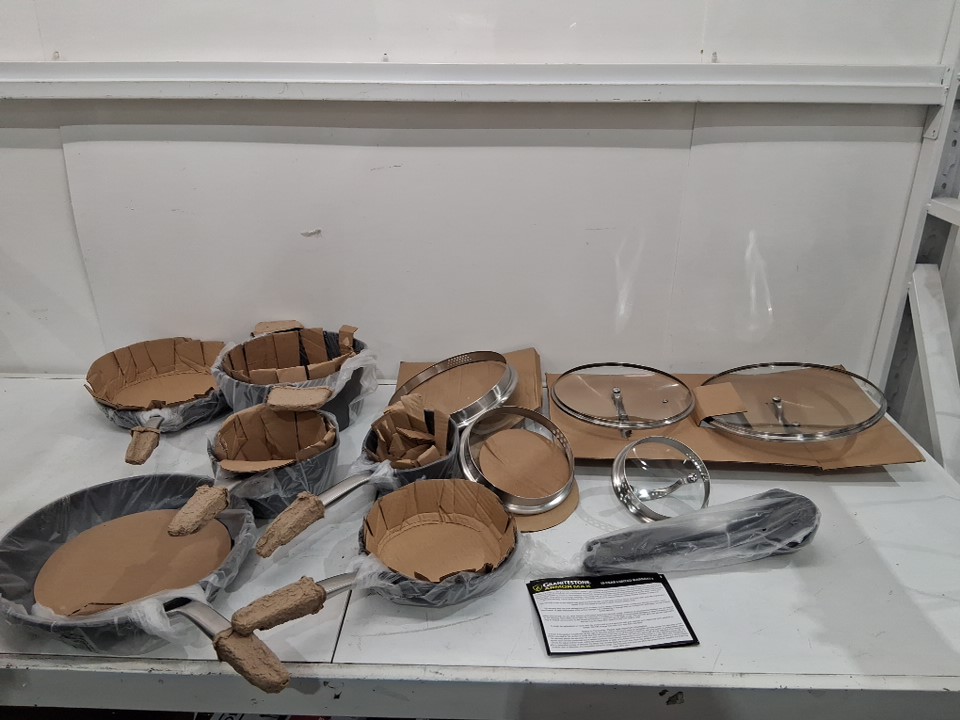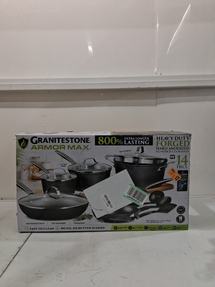 14pc granitestone induction cookware set - dishwasher safe - non stick - 5qt stock pot with lid, 2qt and 1qt sauce pans with lids - 12", 10", and 8" frying pans - 3 utensils - black (model: 1099)