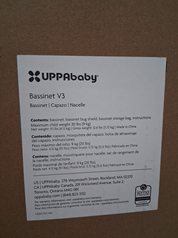 UPPAbaby Bassinet V3 - Compatible with Vista, Cruz, Ridge Strollers - 20lbs max - EVELYN/MEADOW GREEN - (model: 0903-bas-na-EVE)