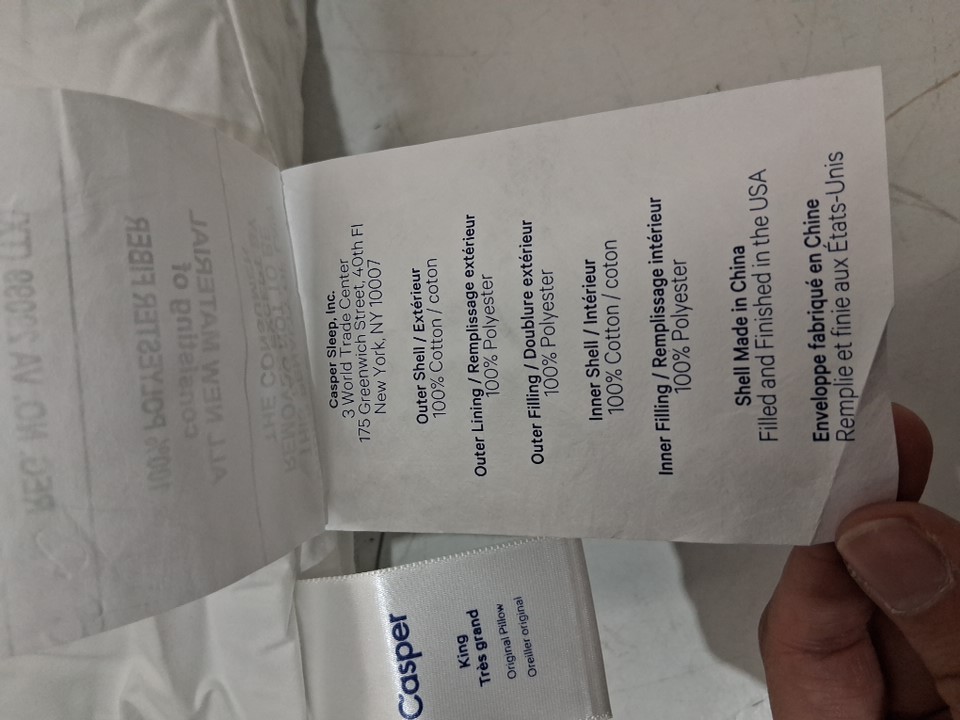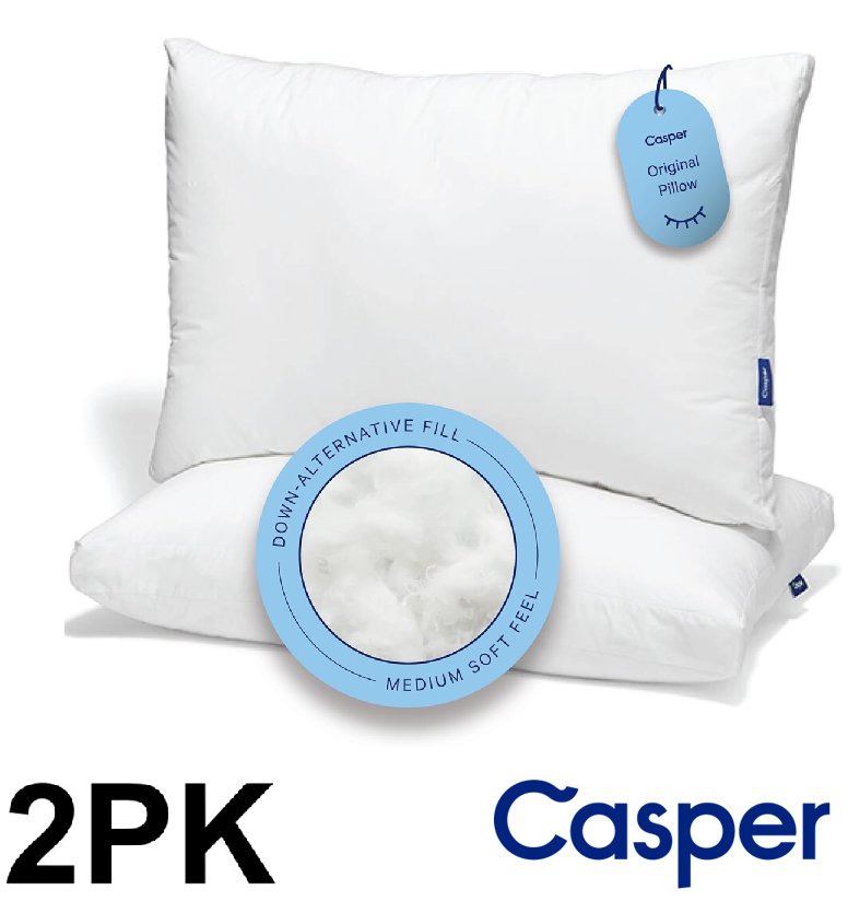 2PK CASPER Original Pillows - KING SIZE - 2" THICK - WHITE