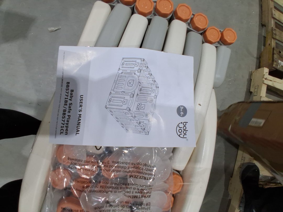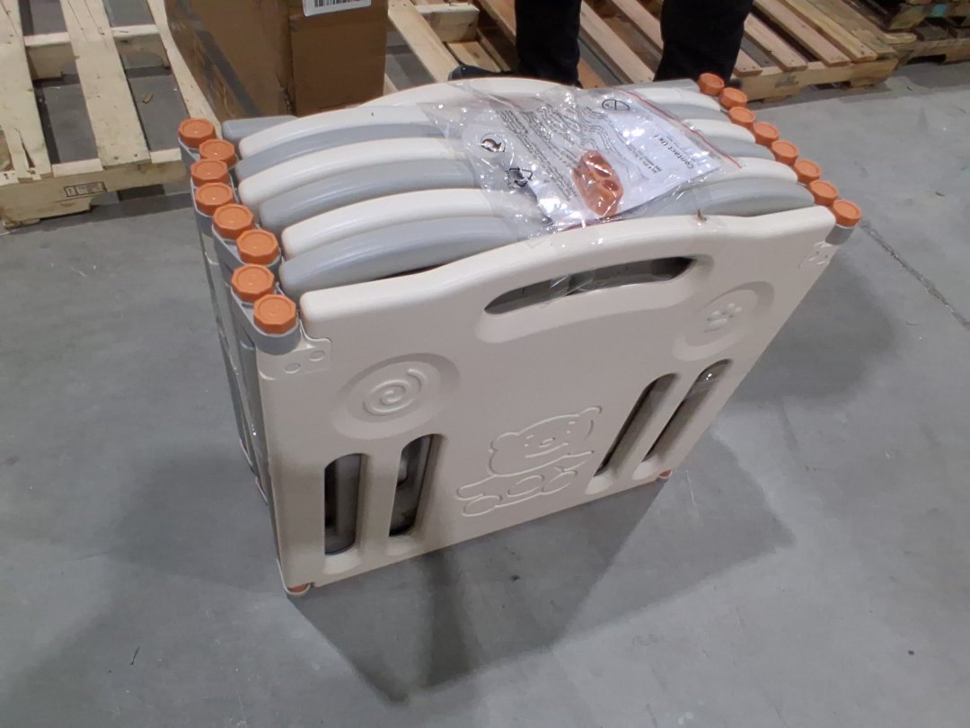 Foldable Baby Playpen with Lockable Gate and Non-slip Base - 14 panels - grey/white