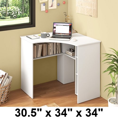 costway triangle Corner Computer Desk with Adjustable Shelf - 30.5" x 34" x 34" - white (TP10116)