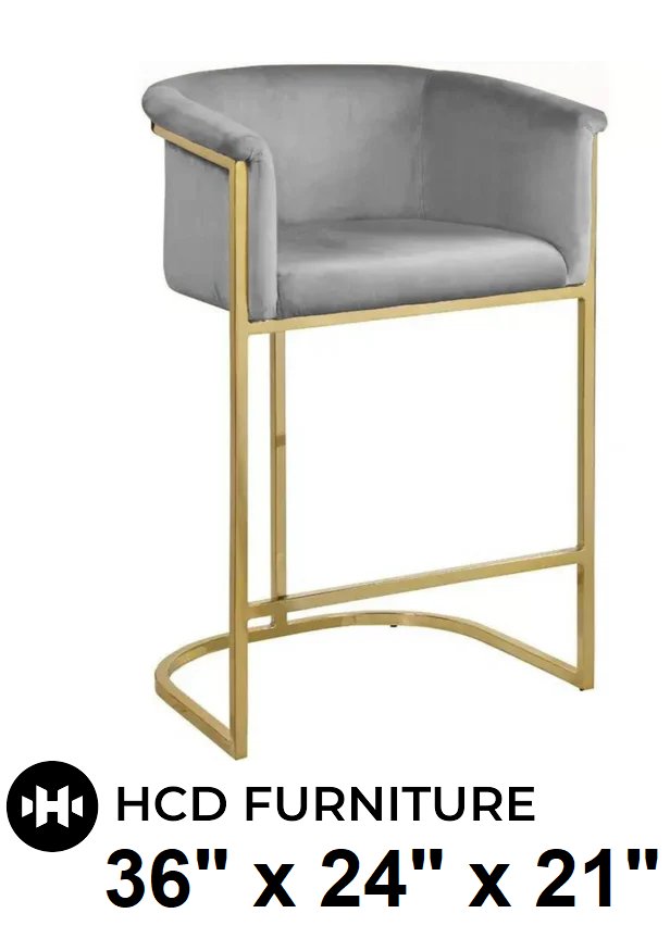 hcd furniture velvet kanye counter stool - 36" x 24" x 21" - grey/gold (model: zb-7167)
