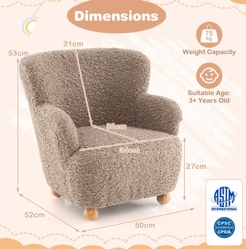 costway Comfy Toddler Armchair with Solid Rubber Wood Legs for Kids Aged 3+ - brown (model: HY10455CF)