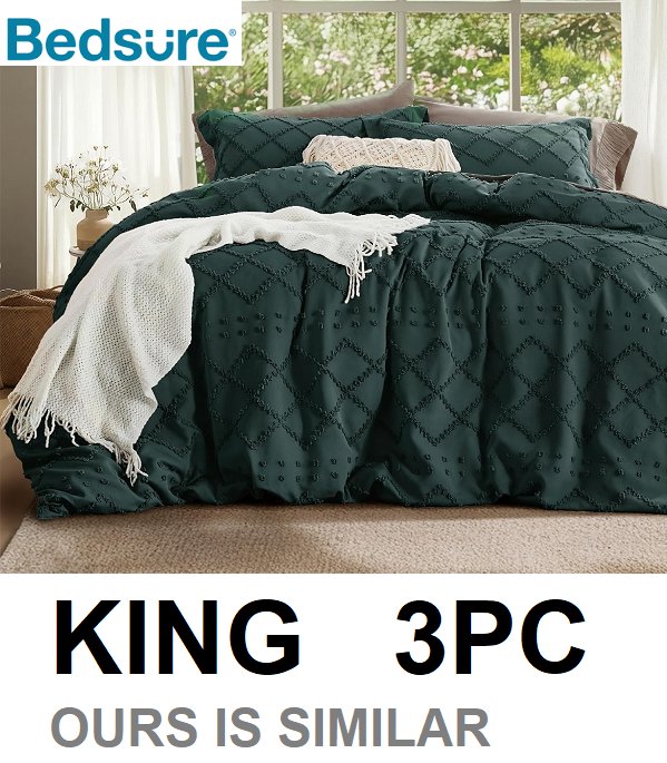 3PC Bedsure Boho Duvet Cover WITH 2 PILLOWCOVER - KING - Forest Green