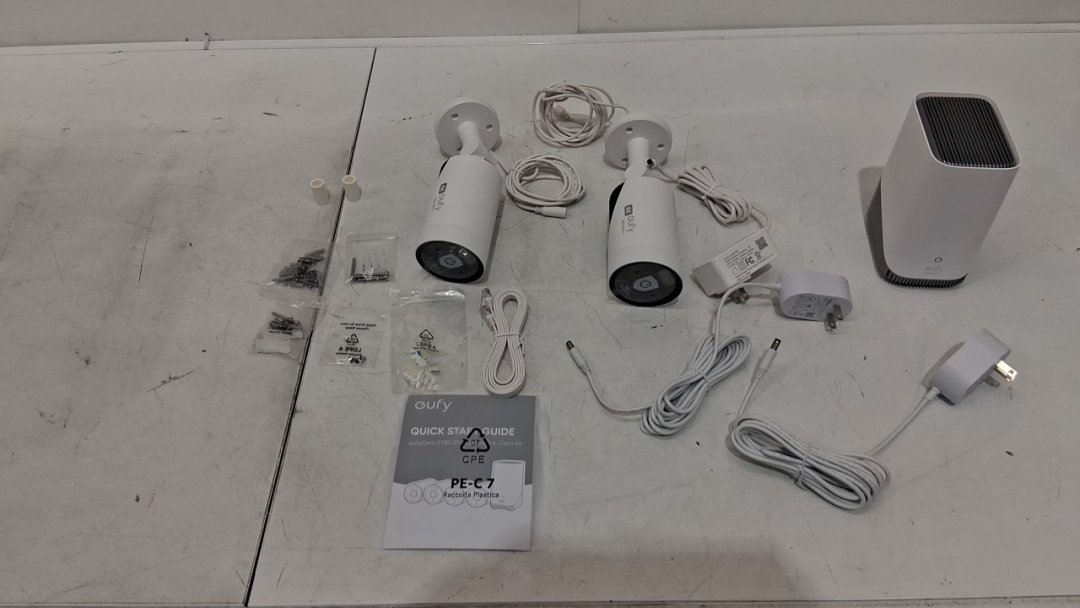 eufy security E330 dual-camera 4k outdoor security system with external hard drive slot & wifi app connection - white (model: E8601)