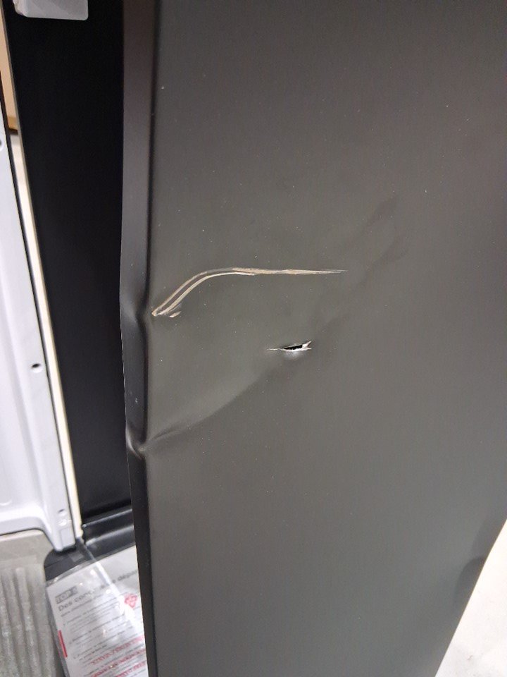please note there is a dent on the side of the fridge *GENERIC CONDITION STATEMENT* This item has been handled/inspected, tested if needed by our listing staff to the best of their ability/knowledge and for an unknown reason arrived to our facility with an issue. This issue can either be a very minor/major cosmetic issue which most likely occurred during shipping such as a dent, indent, scuff, stain, scratch or knick. If not a cosmetic issue, it can be a function issue with the item itself or there could be certain parts missing to make the item complete from how it is sold originally. (See lister notes and photos attached of the issue stated as well as packaging condition)