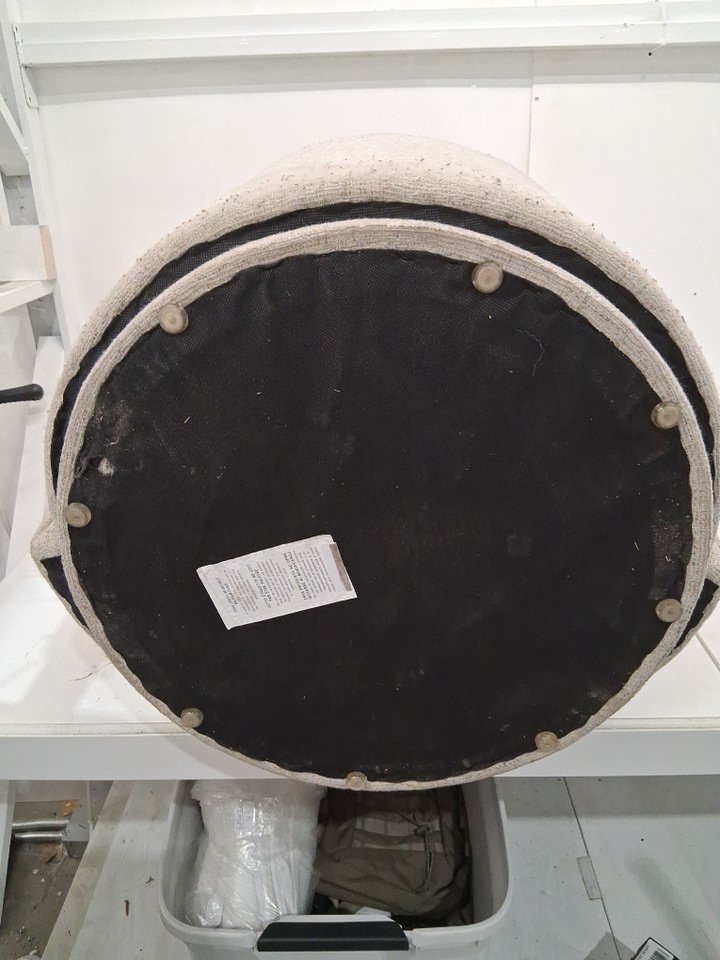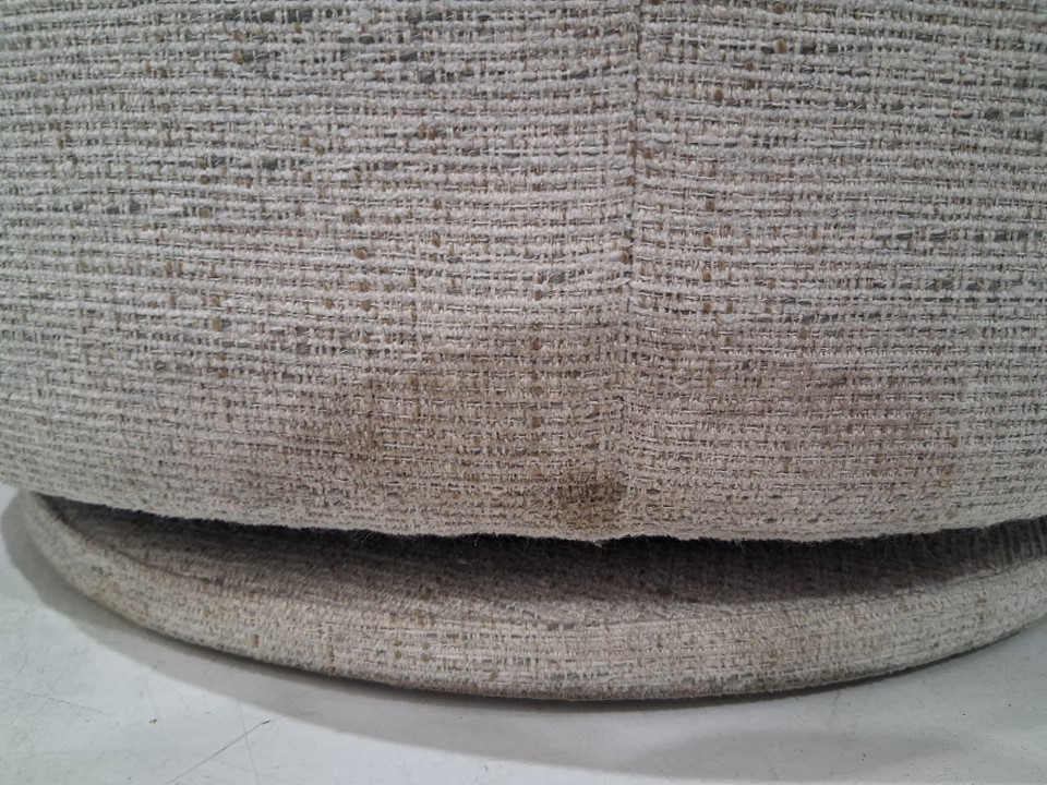 There is one dark dirt stain near the bottom of the back of the chair due to shipping without any protective packaging - see photos. There may also be some light dust/dirt in other areas due to storage and handling, but the only standout cosmetic issue is the aforementioned stain.
