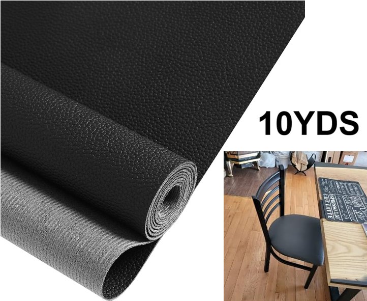 MARINE VINYL FAUX LEATHER UPHOLSTERY PRE-CUT FABRIC - 0.9MM THICKNESS - 10 YARDS - BLACK