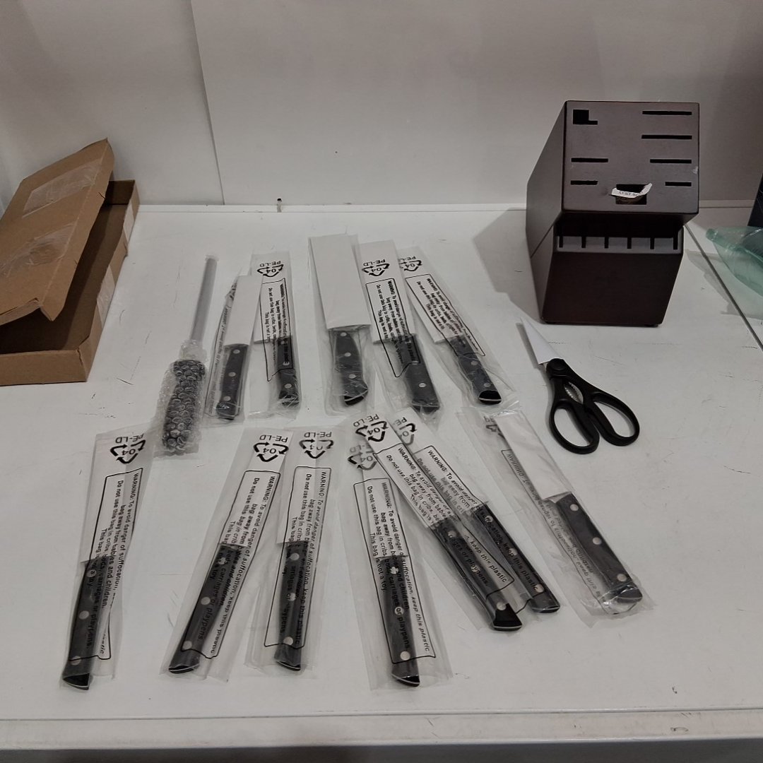 There is a small chip/scratch in the paint on the bottom corner of the knife block. (see photos)