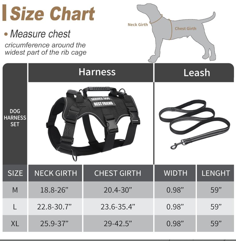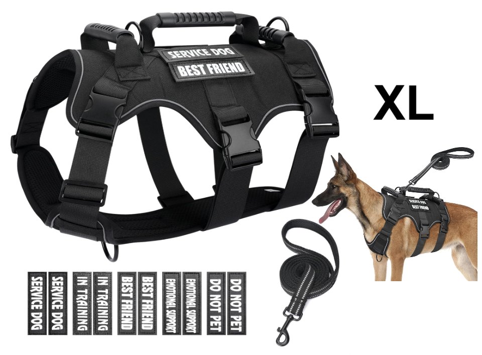 dewvie heavy duty tactical dog harness with accessories - size XL - black
