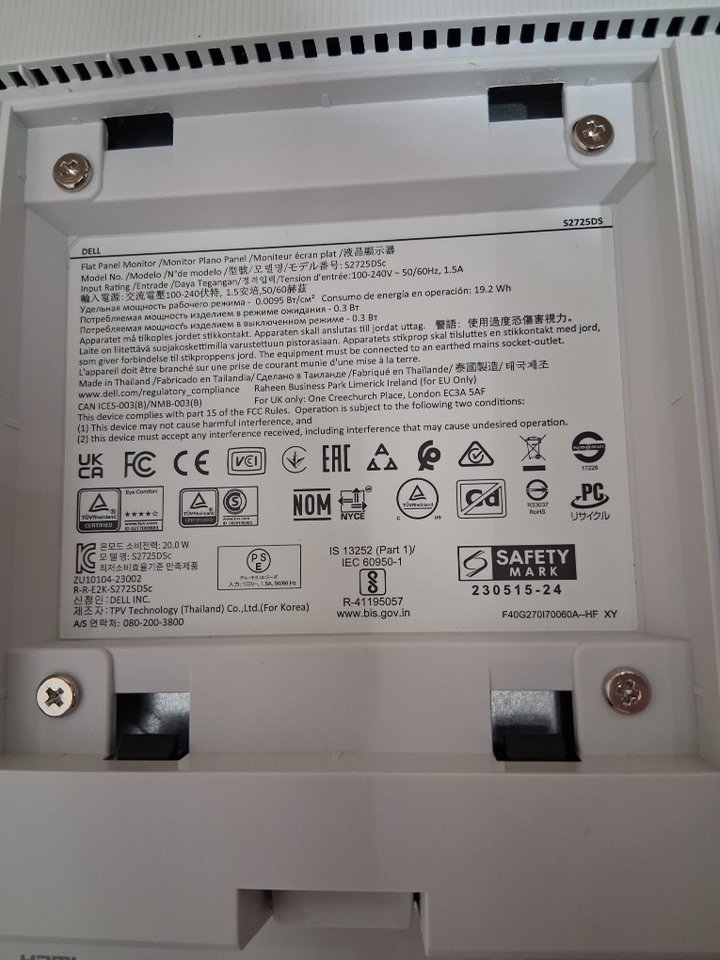 Dell 27″ Plus QHD Smart Monitor with IPS Display - 100 Hz Refresh Rate, 99% sRGB Color, 1500:1 Contrast Ratio, Built‑In Dual 5W Speakers with Audio Presets, Full Ergonomic Stand, Dual HDMI & DisplayPort with VRR Support - White (Model:S2725DS)