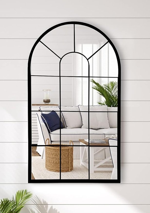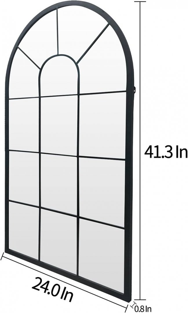 HQiJun Decorative Arched Farmhouse Wall Mirror - 24" x 0.8" x 41.3" - Black (Model: MRH-BK005)