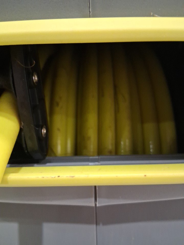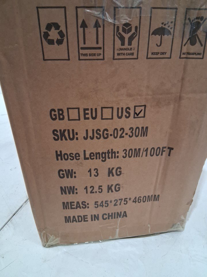 please not ethe product was discovered to be covered in dust, dirt, and scuff marks, along with this we found some water inside the hose, this can be cleaned, please see photos for more details