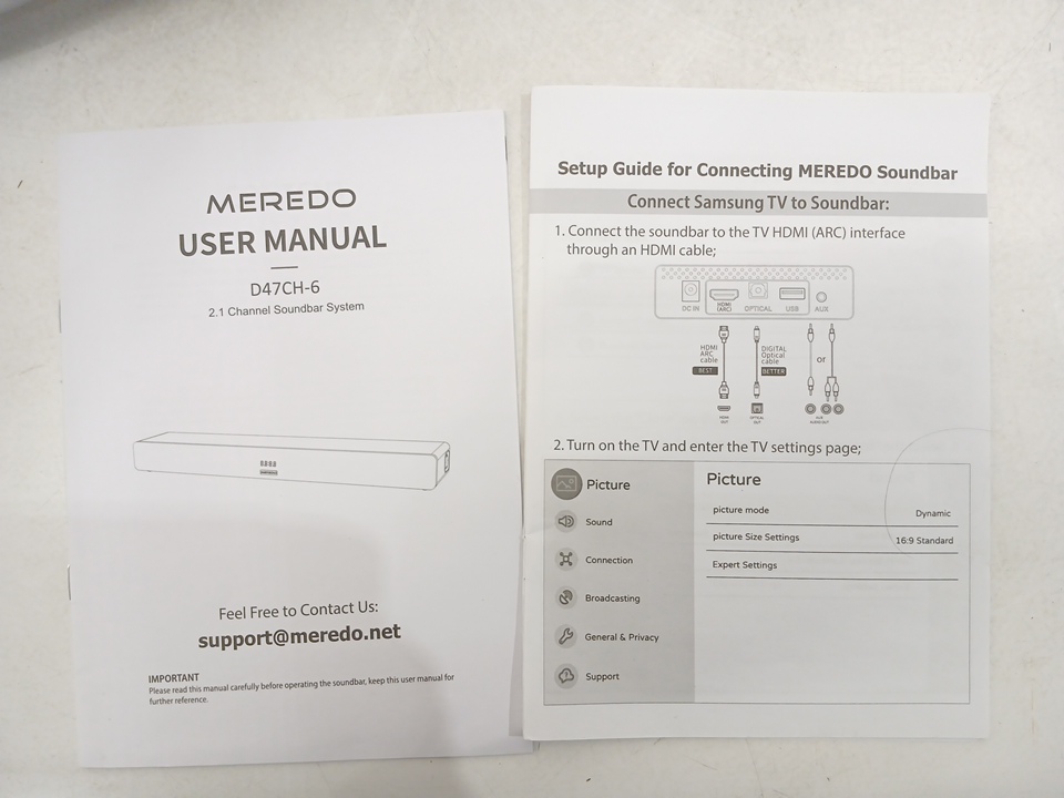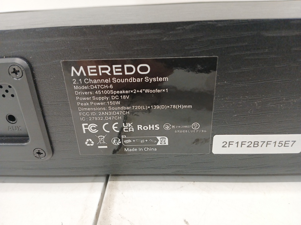 MEREDO Sound Bar - Built-in Subwoofer 150W 2.1CH with HDMI ARC/Bluetooth 5.0/Optical/AUX Connection - 28" - BLACK (MODEL: d47ch-6)