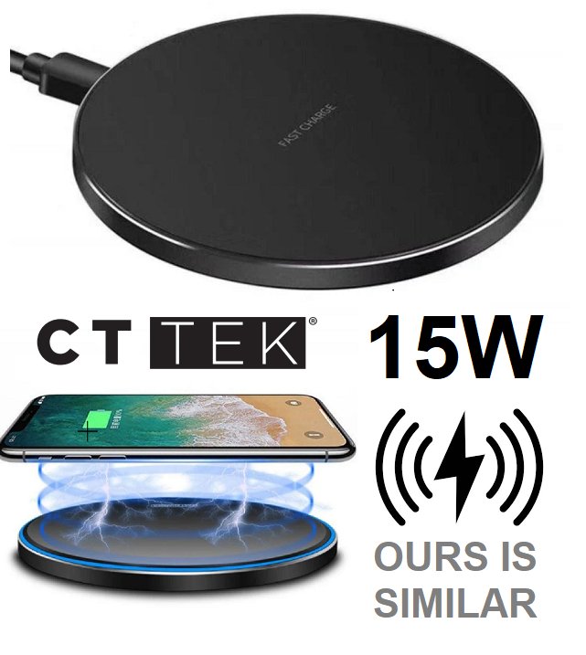 ct tek qi-enabled wireless phone charger pad - 15w - black