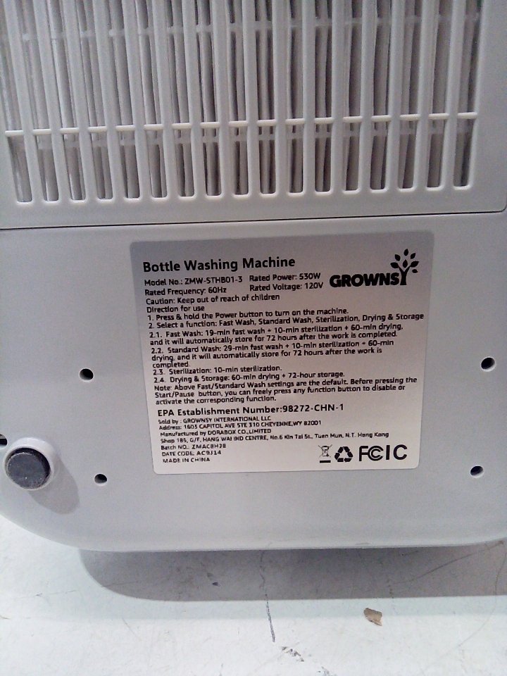 GROWNSY ALL-IN-ONE BOTTLE Bottle Washer and Sterilizer and Dryer MACHINE WITH detergent tablets- WHITE (MODEL: ZMW-STHB01-3)