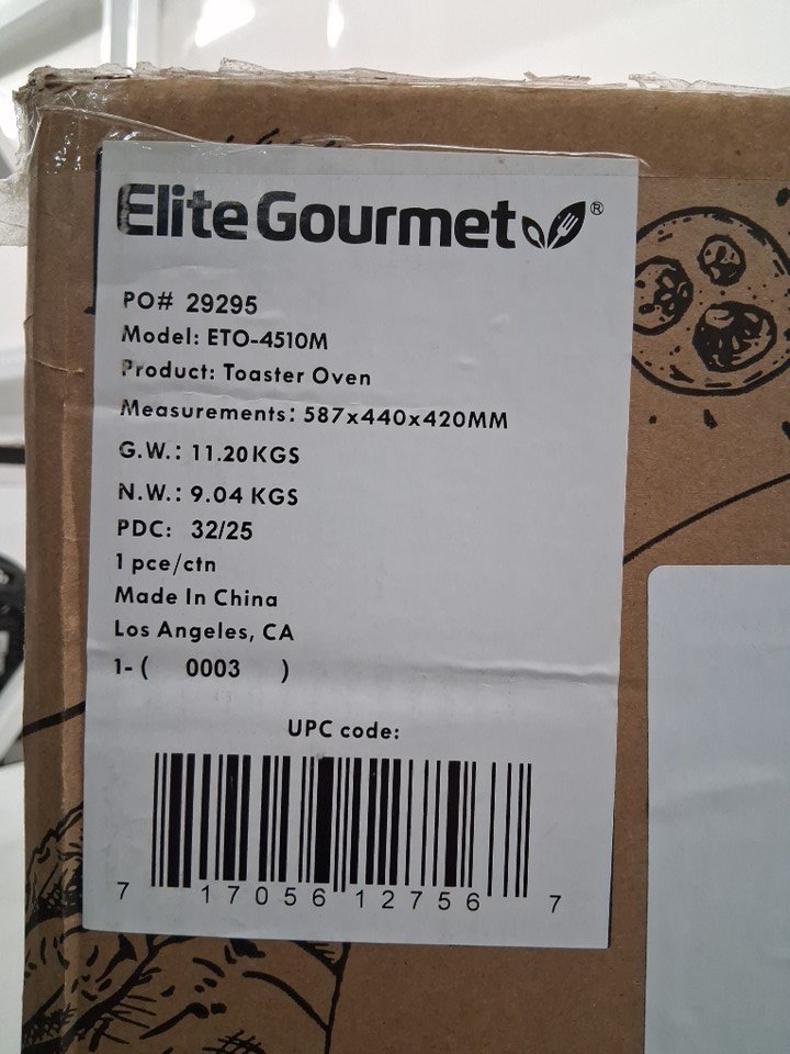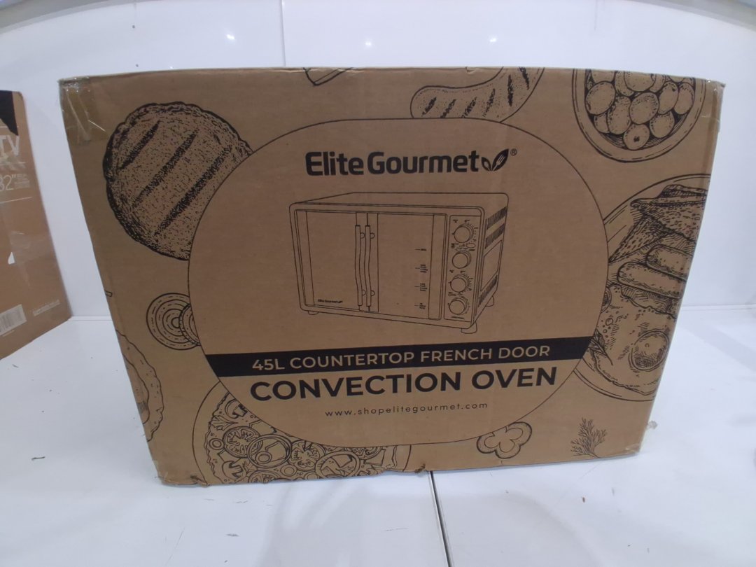 ELITE GOURMET FRENCH DOOR COUNTERTOP CONVECTION TOASTER OVEN - 45L CAPACITY - STAINLESS STEEL (MODEL: ETO-4510M)