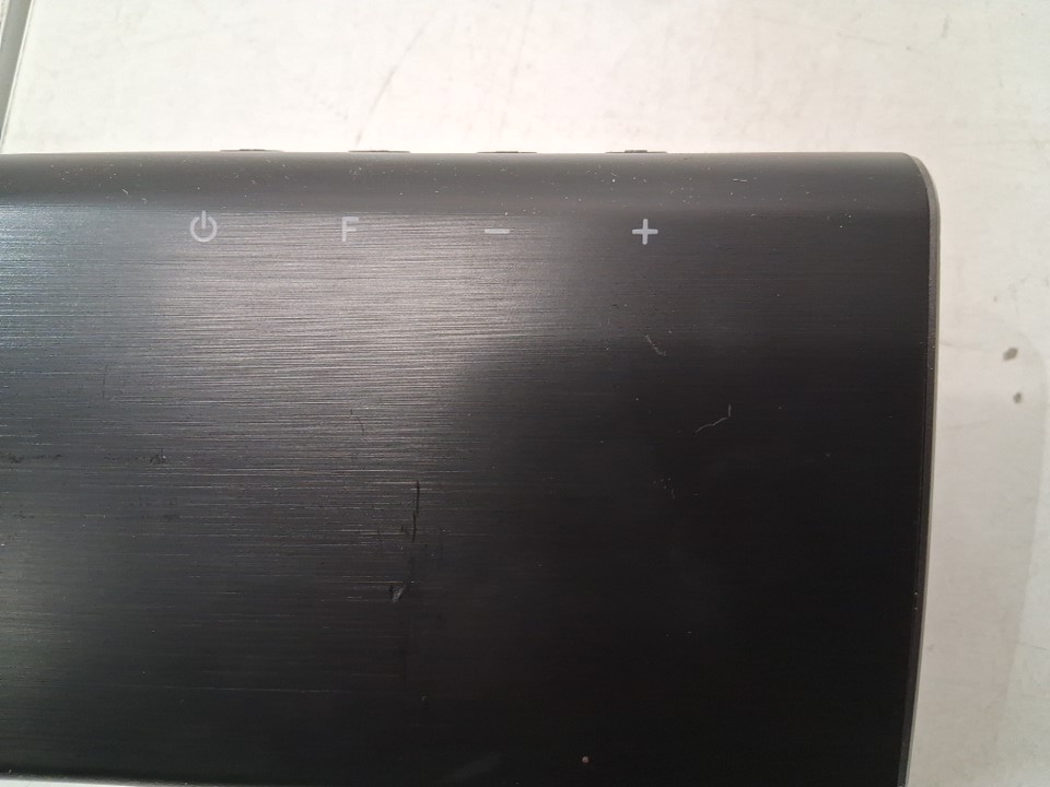 There are some scuffs on the face of the soundbar near the control buttons due to shipping - see photos. Otherwise there is no visible damage or other issues with any parts. Tested for power, pairing, sound, and bluetooth connectivity.